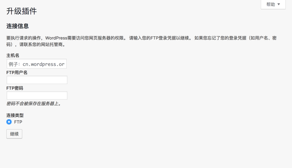 WordPress 没有写权限,导致无论是升级/更新 WordPress、安装/更新插件都要求输入 FTP 密码。