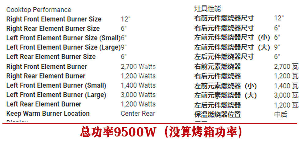 这个炉子的总功率达到了9500W,另外烤箱的功率有2600W。所以,你家里面用的是这种电的炉头,那相应的,你家的电费肯定就会很多。