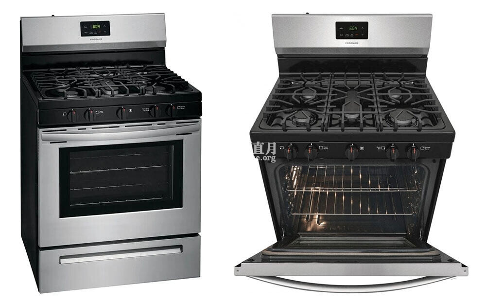 还有一种情况,很多华人,因为喜欢做中餐,这种情况电炉子就不太适合,因为没办法爆炒,相应的油烟也更多,所以他们会把电炉子升级或者说改造成天然气炉子,当然改燃气的费用不低。而且抽油烟机需要一起改造,因为,**电炉子配套的这种抽油烟机都是内循环,用白话来讲,基本没什么用,因为它跟屋外面是不连通的,真是抽了个寂寞。**下图是一般改造后的天然气炉子,也是自带烤箱的。